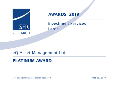 Instituutioasiakkaat arvioivat vuotuisessa SFR-tutkimuksessa eQ Varainhoidon Suomen selvästi laadukkaimmaksi varainhoitajaksi. 64 % tutkimuksen noin sadasta haastatellusta instituutiosijoittajasta käyttää eQ Varainhoidon palveluita.